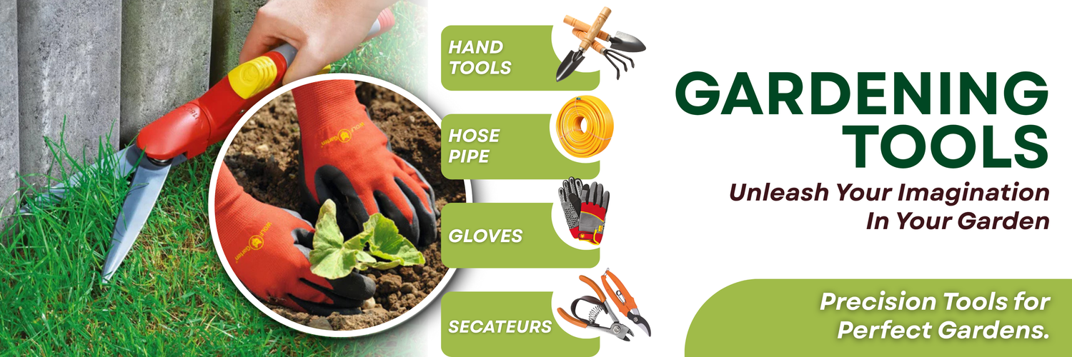 - Gardening Tools – Hose Pipe, Secauters, Prunning Shears, Gardening Sprayer, Hand Tools