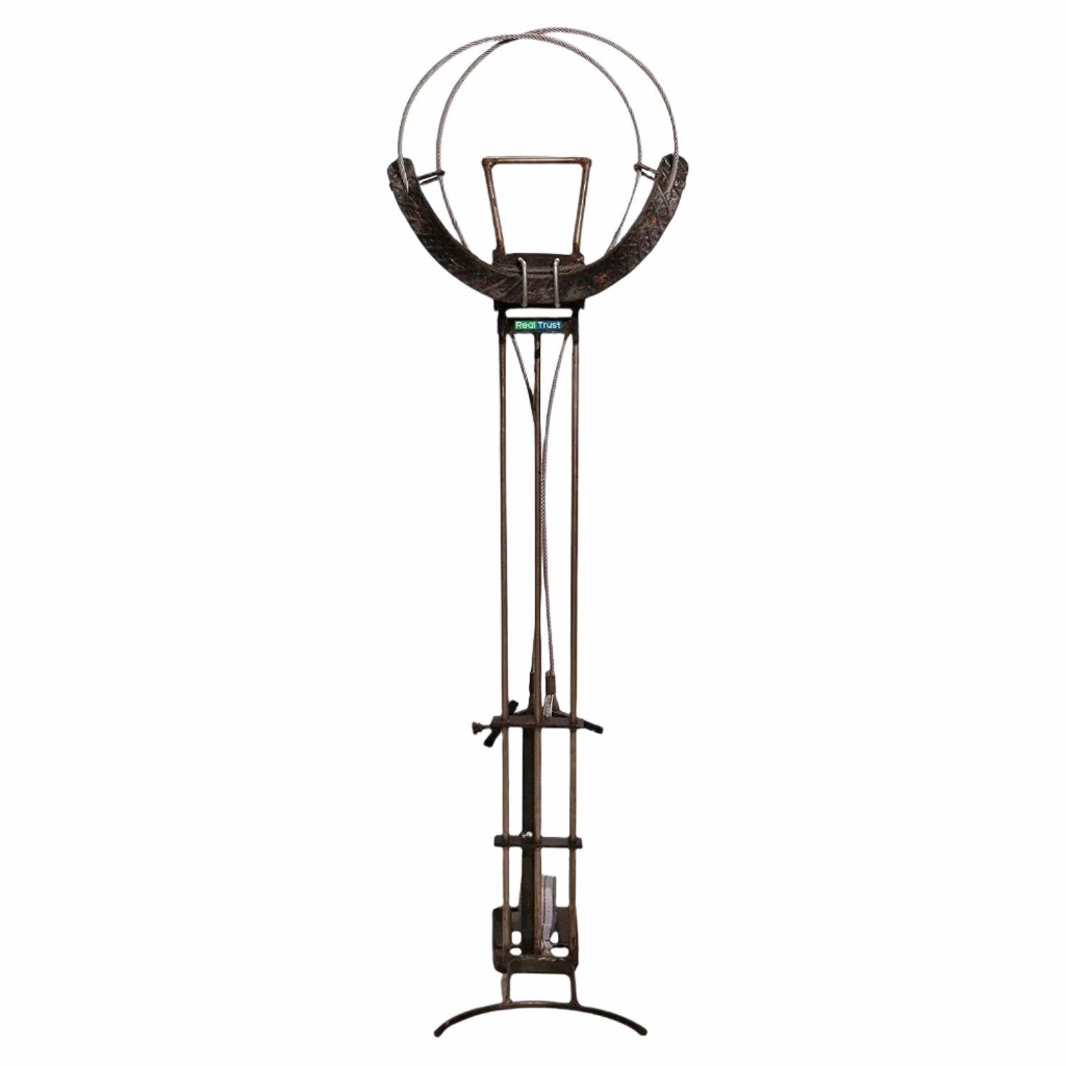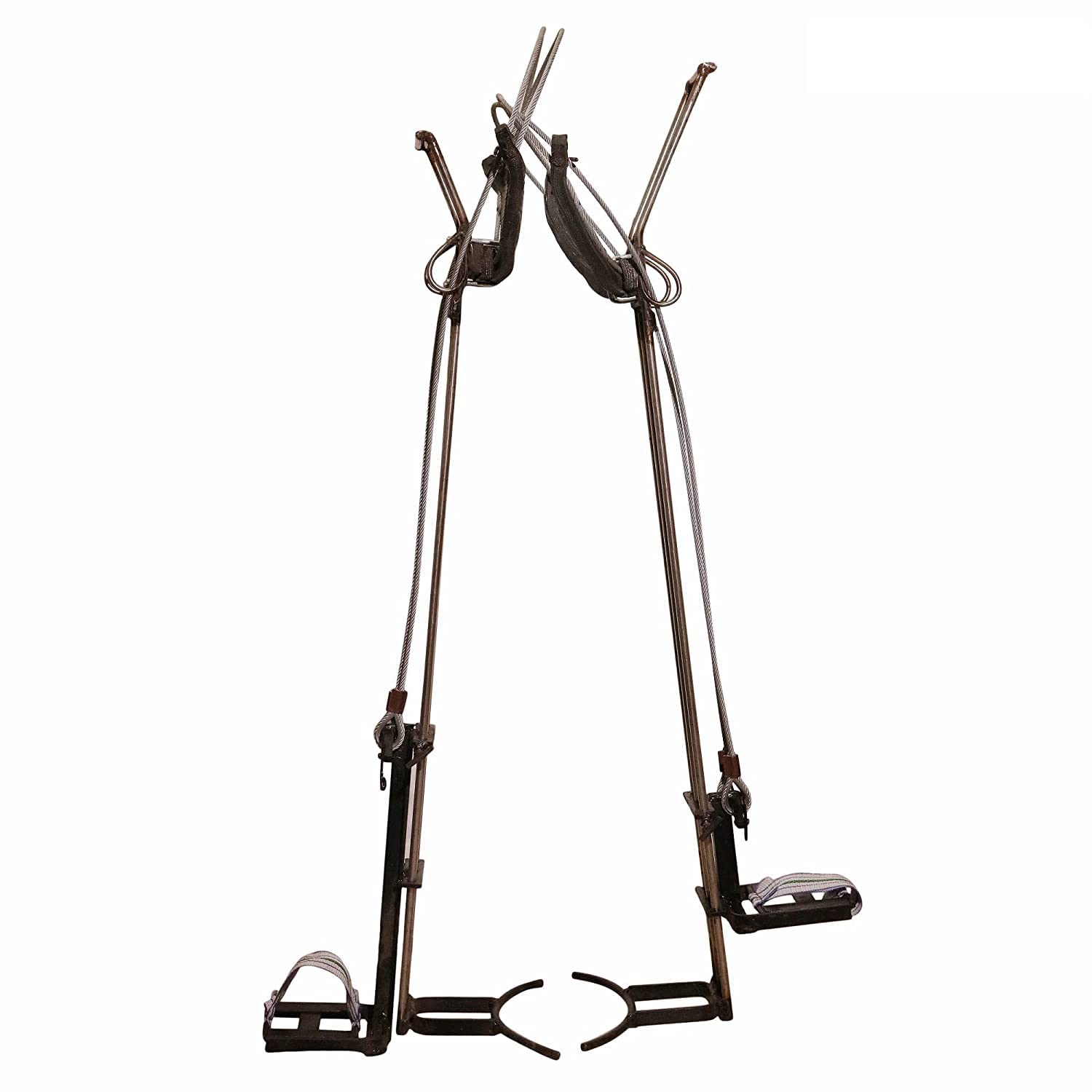 The climber features adjustable straps that wrap securely around the tree trunk, allowing the user to climb up and down the tree with ease. The footrests are specially designed to provide a comfortable and stable base, ensuring that the user can maintain their balance while reaching for the coconuts.